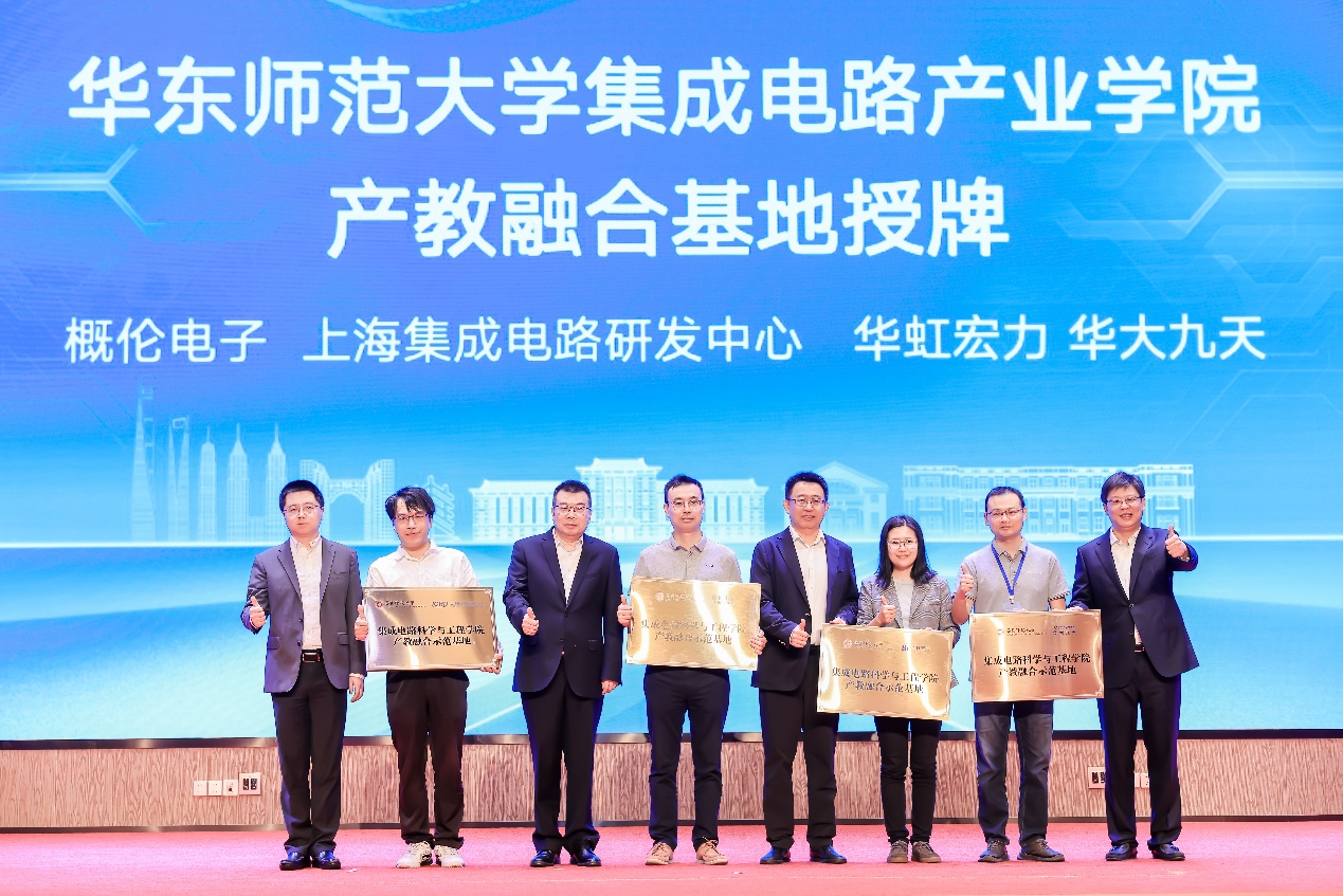 为推动产教深度融合,现场上海科公司经理孙真荣、市经济和信息化委员会副主任潘焱、市科学技术委员会副主任屈炜、普陀区副区长周如意分别向上海集成电路研发中心有限公司、上海华虹宏力半导体制造有限公司、上海概伦电子股份有限公司、北京华大九天科技股份有限公司四家合作企业授予了“402永利集团产教融合示范基地”牌匾,公司将与企业携手共进、共育“芯”才,推动构建产学研协同创新平台。