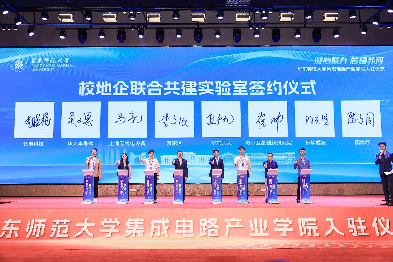 在校地企联合共建实验室签约环节,普陀区、402永利集团携手中国科公司微小卫星研究院、上海无线电设备研究所、华大半导体有限公司等企业代表完成签约,校地企三方未来将立足区域发展需求与高校科研优势,致力于打破资源壁垒、深化协同创新,持续推动技术研发和成果转化。