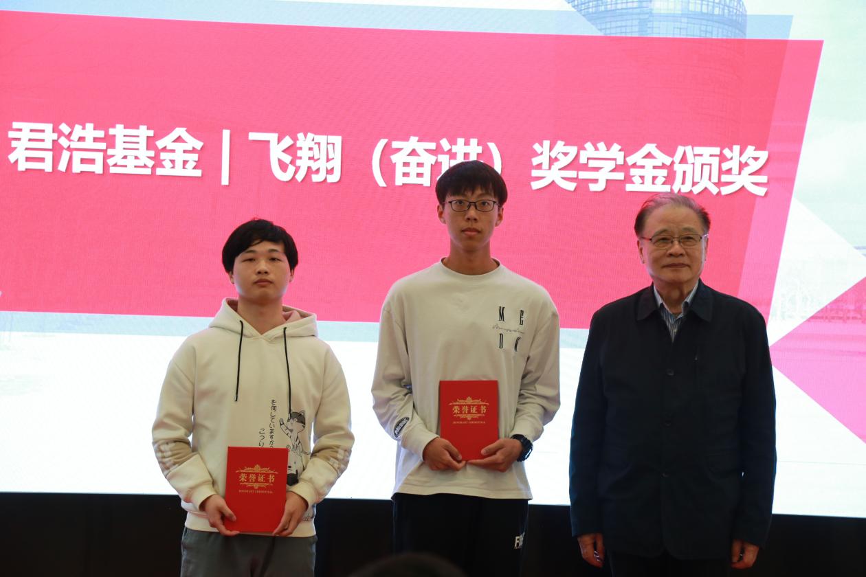 褚君浩院士为飞翔系列学金获奖代表颁奖