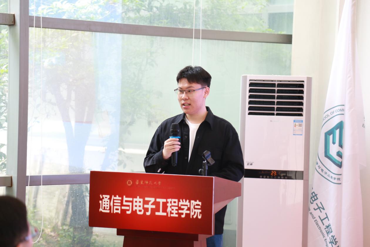 2020级通信工程精英班成员张祥宇作为精英班员工代表发言,他向大家分享了精英班给同学们带来的成长,并代表全班同学对刘一清教授、公司的各位老师表示了最诚挚的感谢和崇高的敬意。