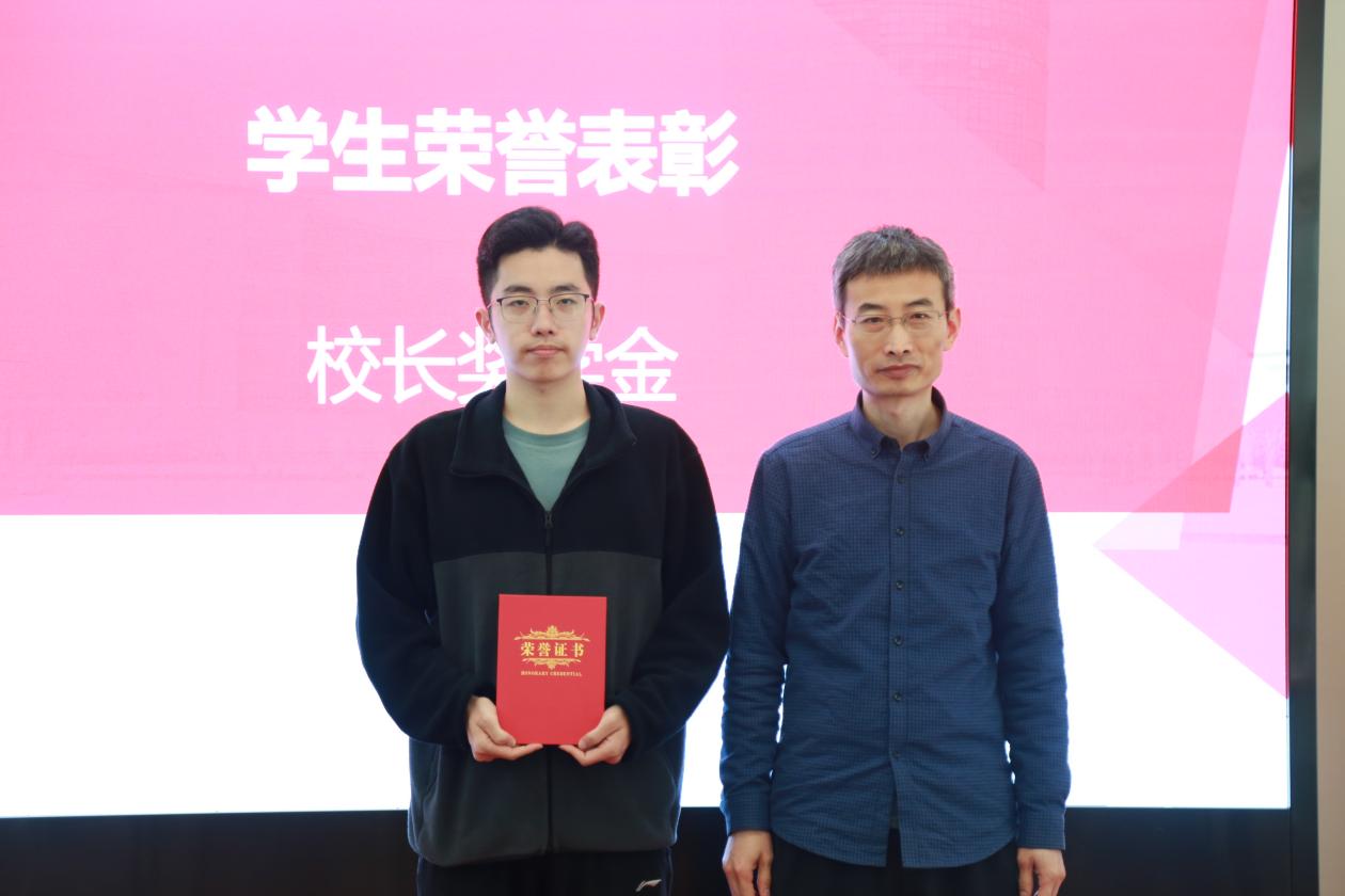 402永利集团副经理李庆利为获得董事长奖学金的获奖员工代表颁奖