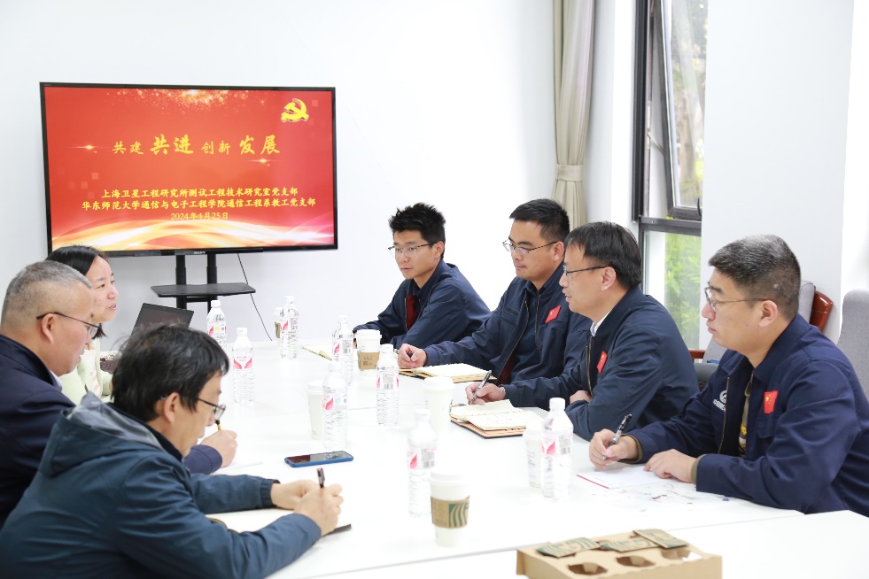 2024年4月25日下午,上海卫星工程研究所十八室党支部委员会与通信工程系教工党支部委员会在信息楼128会议室召开了以“共建、共进、创新、发展”为主题的支部党建共建工作推进交流会。