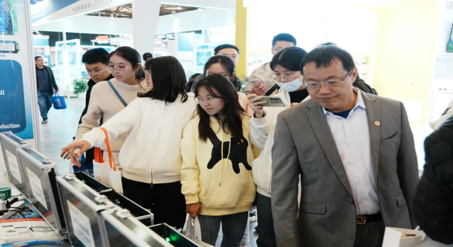 同学们跟随刘教授参观电子展