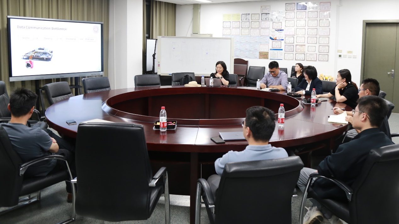 2024年5月16日下午,美国东北大学电气与计算机工程系张璇副教授来公司做题为《In-Sensor AI Computing for Efficient Real-Time Machine Perception》的精彩学术报告,详细介绍了她在传感器内计算领域发表的最新研究成果,本次报告由吕良剑副教授主持,公司副经理吴幸教授等出席了报告。