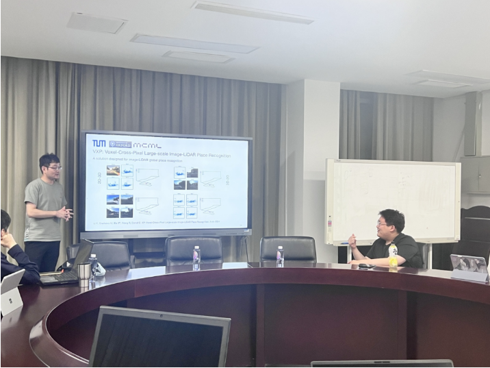 首先德国慕尼黑工业大学夏彦老师为公司师生作题为《3D Visual Localization in Urban Environments》的学术报告。夏彦老师聚焦GNSS信号缺失情况下的定位技术研究,阐述了GNSS信号在高楼和植被覆盖区域失效的问题。与会师生围绕3D环境定位方法与夏彦老师进行深入交流和讨论。