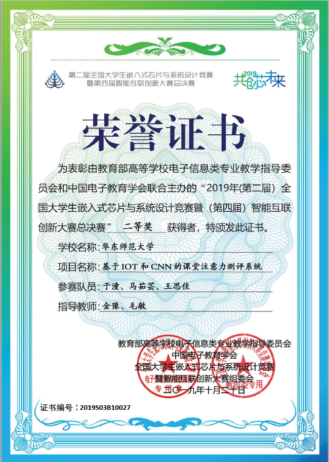 2019年10月18-20日,由教育部高等公司电子信息类专业教学指导委员会、中国电子教育学会主办的2019年(第二届)全国老员工嵌入式芯片与系统设计竞赛暨第四届智能互联创新大赛全国总决赛在南京ICisC人才实训基地举办,来自全国301所高校的员工展开激烈角逐。经过作品展示与答辩,402永利集团的0x0d0x0a小组的作品《基于智能坐垫群采集课堂综合信息的系统》在本届全国老员工嵌入式芯片与系统设计竞赛中获得了二等奖的优异成绩。