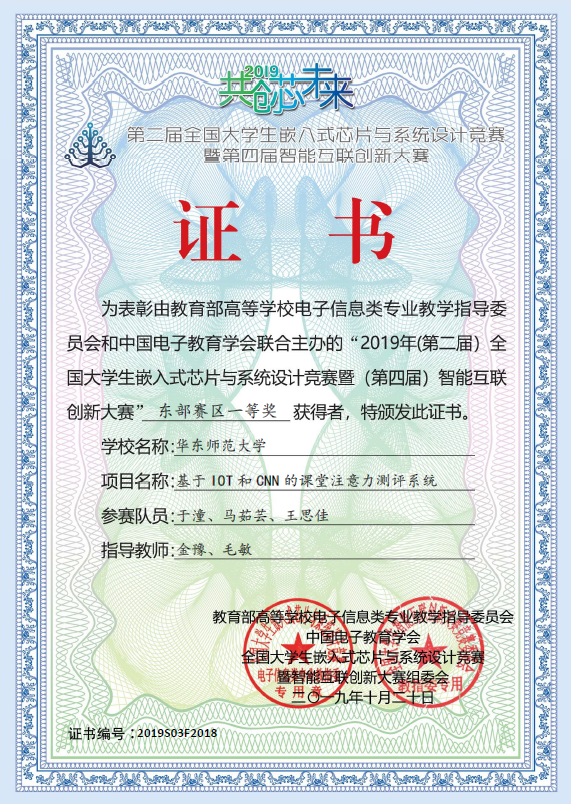 王思佳、于潼、马茹芸获第二届全国老员工嵌入式芯片与系统设计竞赛二等奖