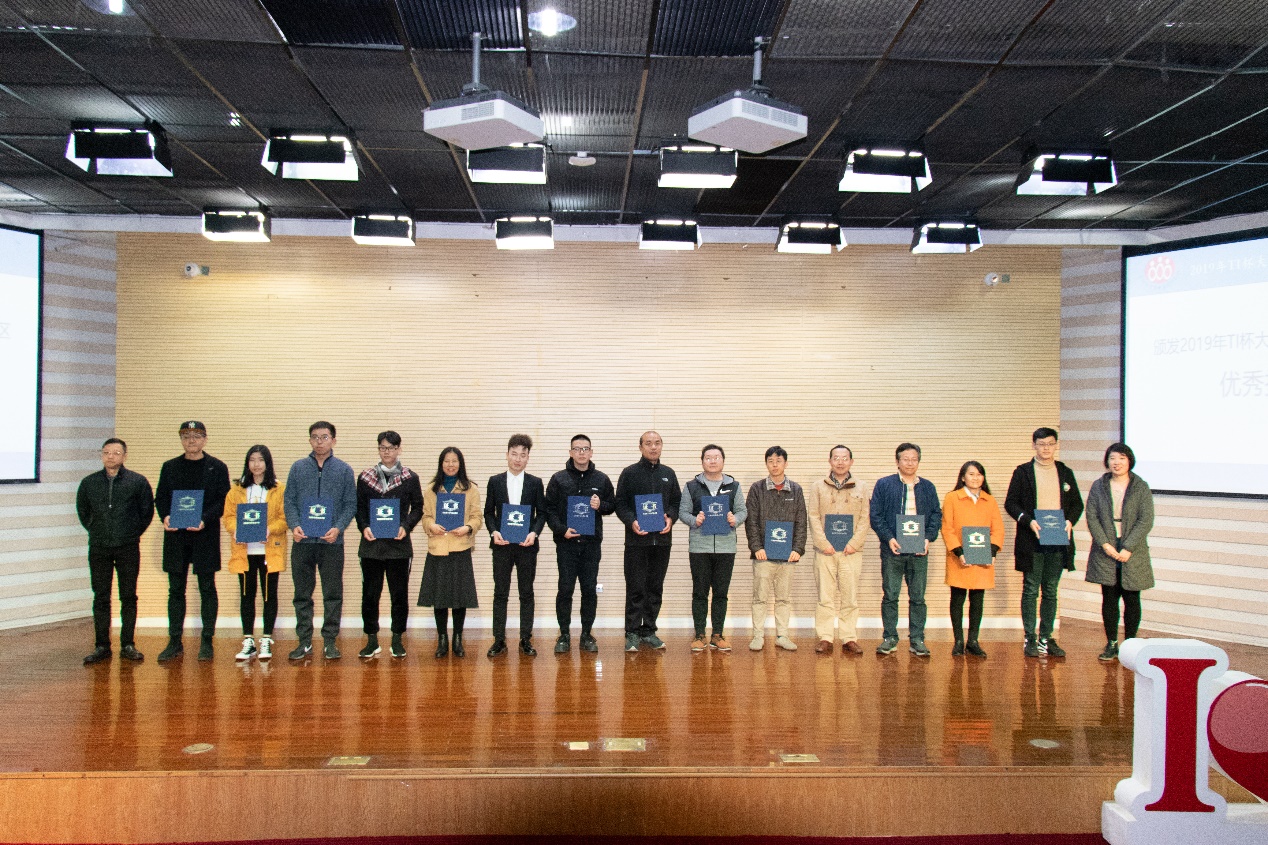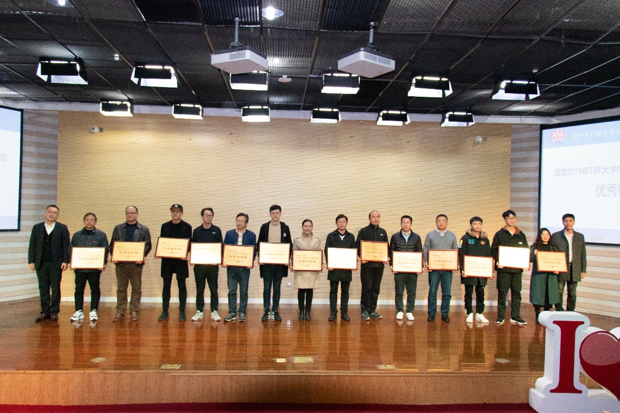 上海市教委高教处赵丽霞副处长、TI公司大学计划部潘亚涛经理颁发“2019年TI杯老员工电子设计竞赛上海赛区TI杯奖