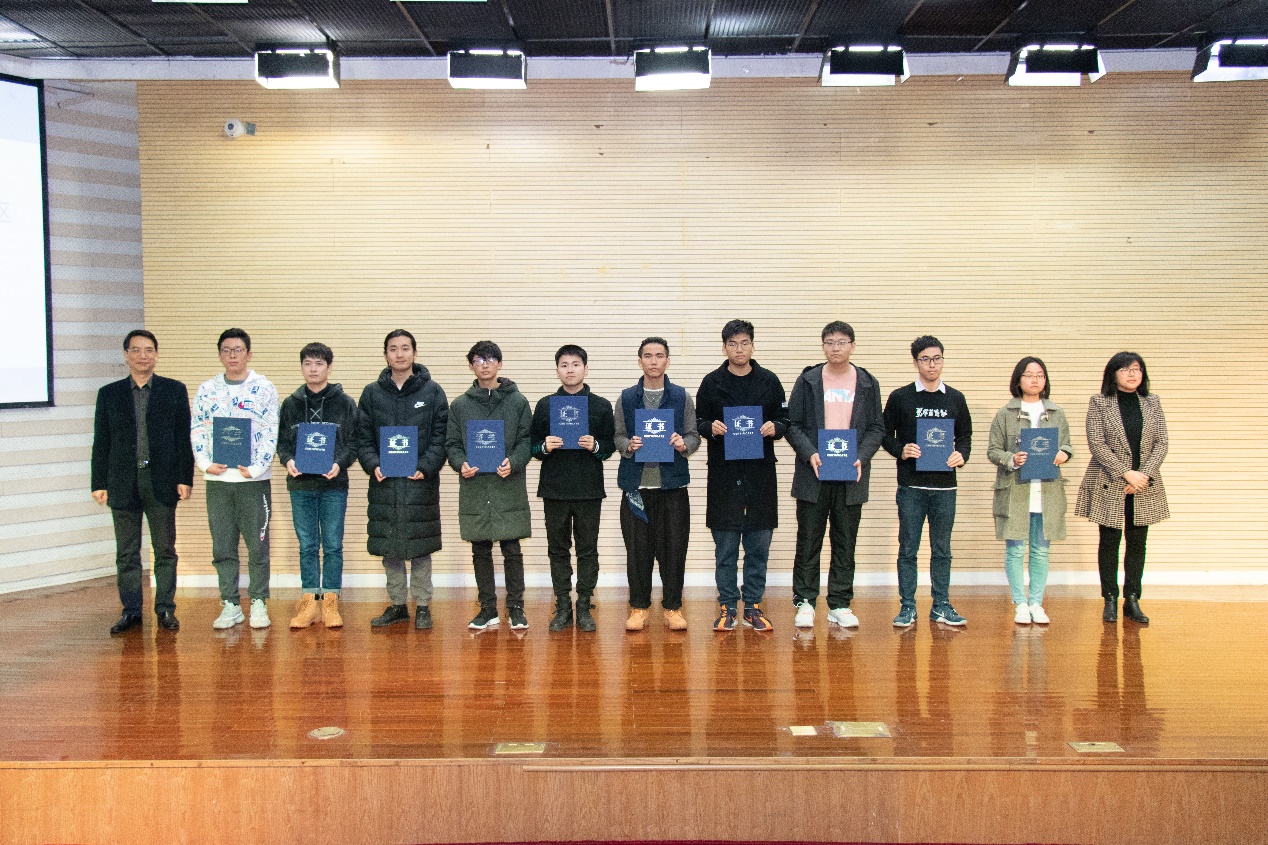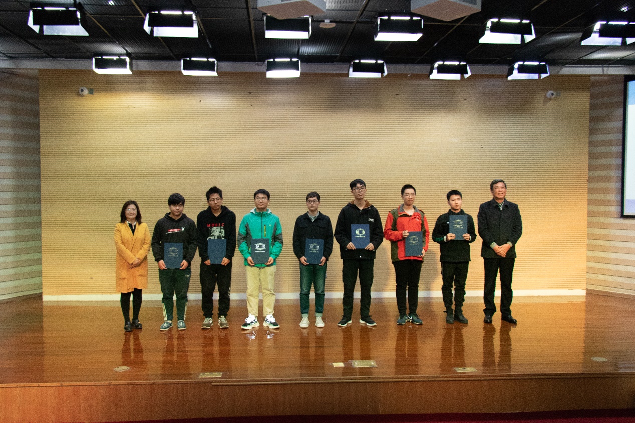 402永利集团创新创业公司阮平章常务副经理、402永利集团教务处徐世猛副处长颁发“2019年TI杯老员工电子设计竞赛上海赛区优秀征题奖”