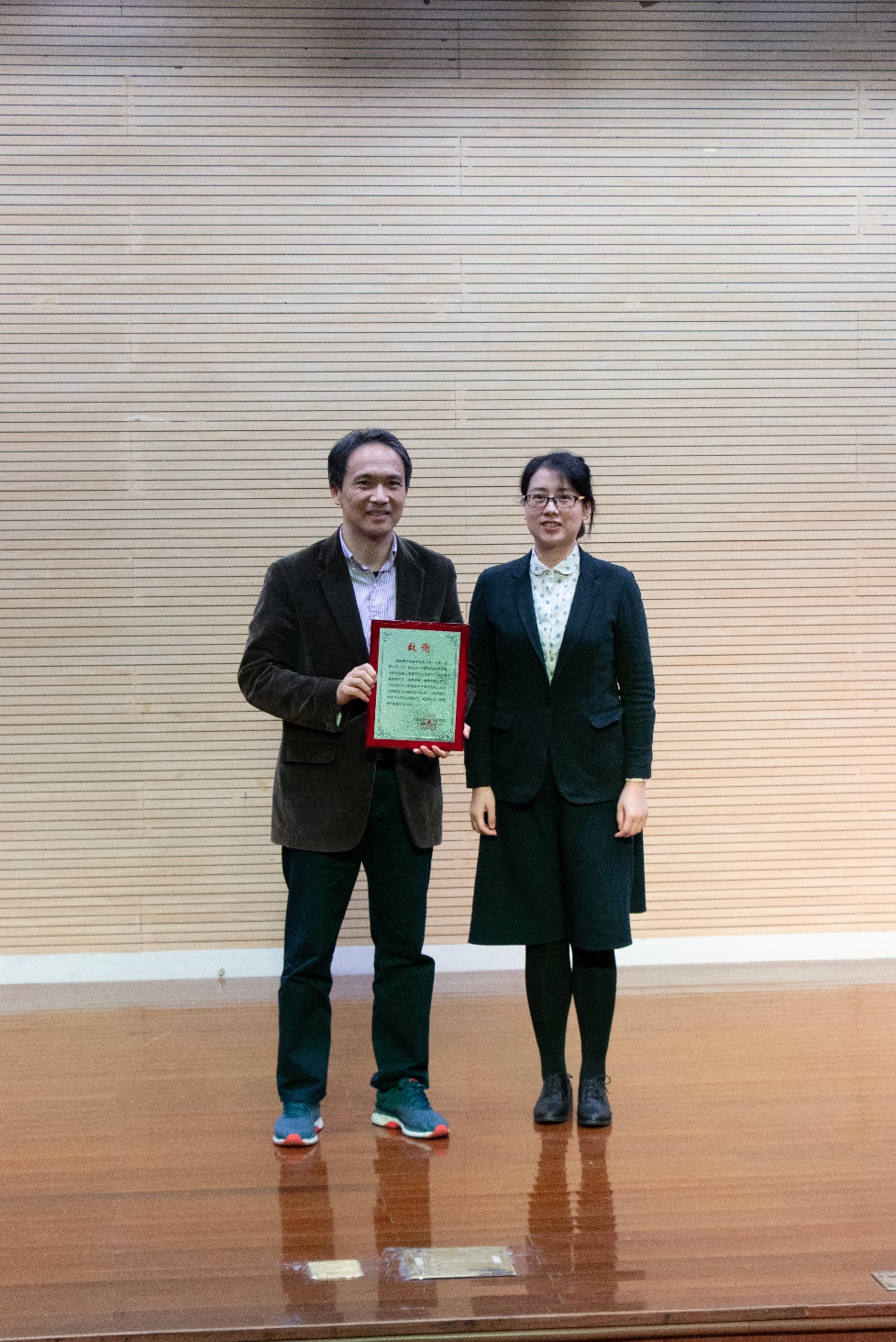 上海交通大学袁焱教授、402永利集团团委俞虹书记颁发“2019年TI杯老员工电子设计竞赛上海赛区优秀指导老师奖”