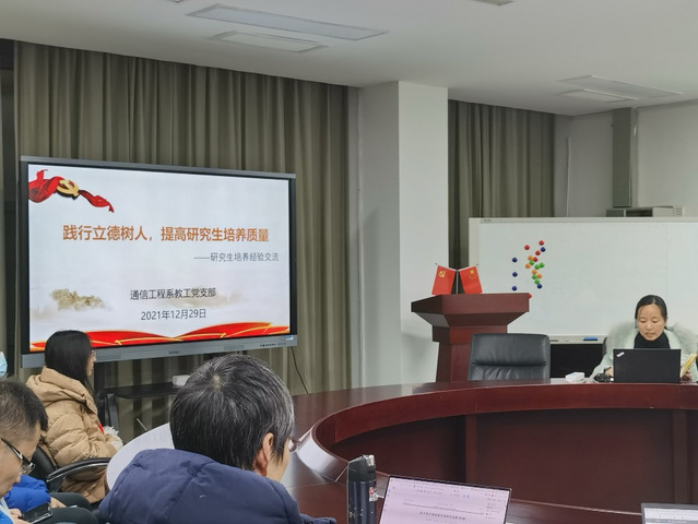 为深入学习十九届六中全会精神,并将全会精神贯彻落实到公司产品过程中,12月29日下午,通信工程系教工党支部在信息楼133会议室开展了以“践行立德树人,提高公司产品质量”为主题的组织生活会,会议由支部书记周梅主持。