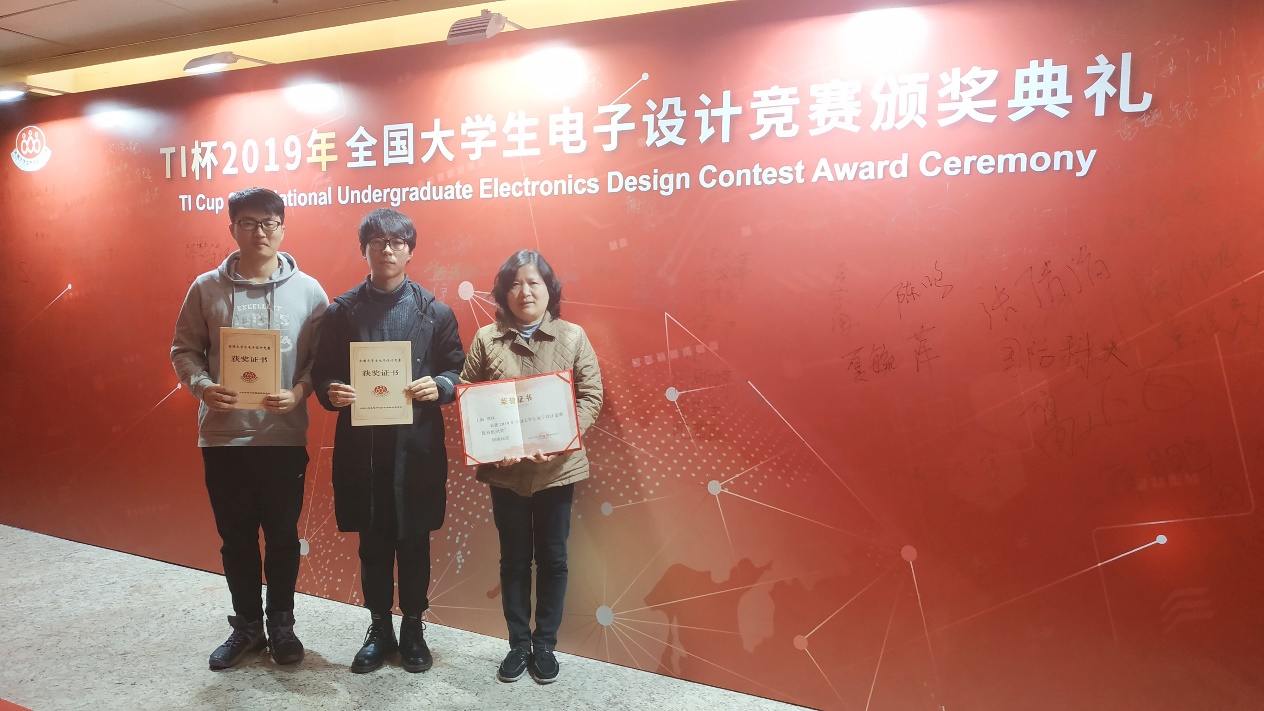 李威远同学、金占峰同学、丰颖老师在颁奖现场