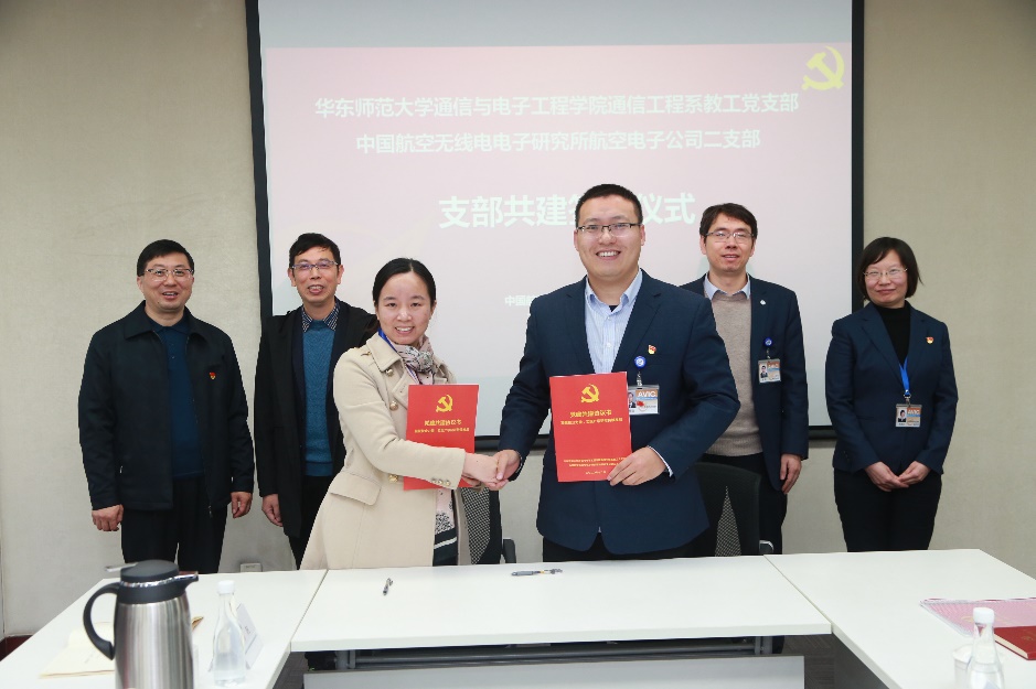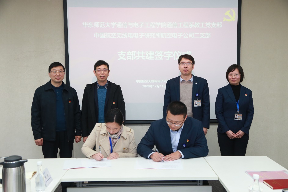 SAVIC航电系统部副部长陈芳首先带领通信系教工党支部党员参观了中国航空无线电电子研究所品牌中心以及民机综合航电系统实验室,向党员代表介绍了该所的发展历程、型号研制情况和未来发展愿景。参观后,航空电子公司二支部书记刘传益和通信系教工党支部书记周梅代表双方单位签订党支部共建协议。