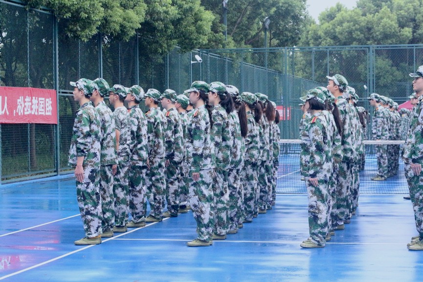 同学们身着迷彩服,排列着整齐的方阵,精神饱满,全身洋溢着青春的气息,尽管烈日与阴雨交织,但同学们在变幻莫测的天气下坚持训练,没有人选择掉队或者退缩,任凭汗水挥洒,身姿依然挺拔。