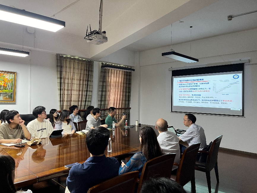杨仕文教授回顾了先进阵列天线技术的发展历程,深入剖析了当前所面临的新挑战,强调了技术革新和应用需求对该领域的推动作用,重点介绍了强耦合超宽带阵、共口径基站天线阵、四维天线阵、非规则阵等几种新兴的先进阵列天线形式,以及这些技术在研究领域中所取得的最新进展和突破。在互动环节中,杨教授耐心解答师生各种问题,深入探讨先进技术背后的科学原理和实践应用。