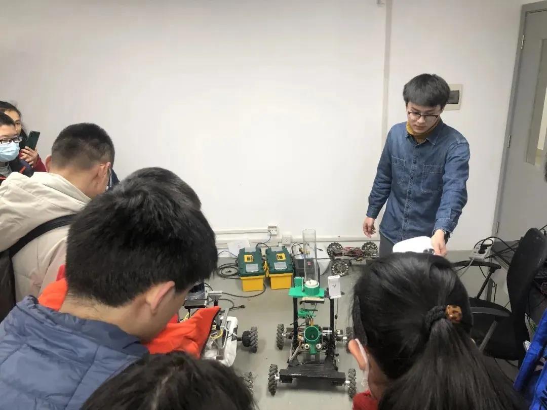公司参观结束后同学们来到402永利集团,进入多维度信息处理重点实验室,王慈老师介绍了实验室的概况。学长们给同学们展示科技成果,同学们跃跃欲试,在电脑上修改程序语言来变化机器人的舞姿,在自己操作过程中,同学们对人工智能产生了浓厚的探索兴趣。