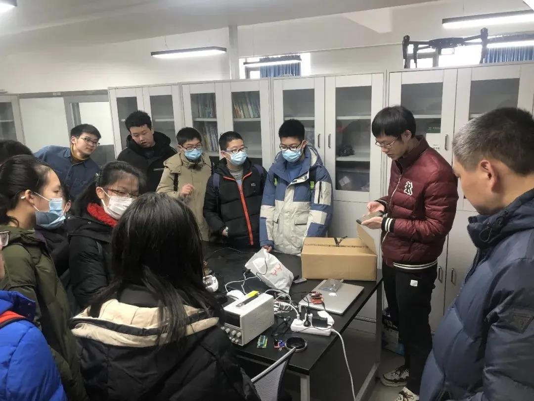 在同学们的热切盼望下,科学家进校园活动之“实验室参观探究”活动终于如约而至,1月3日下午,上海市南汇第三中学18名学员,在科技辅导员陈瑜老师的带领下,来到通信公司进行参观学习。虽然冷空气降临,气温骤降,但这丝毫不能阻挡同学们探寻知识的热情。在公司通信工程系副主任王慈副教授的引导下,同学们一边漫步在冬日里的华师欣赏美景,一边认真听王慈老师介绍美丽的华师大校园。