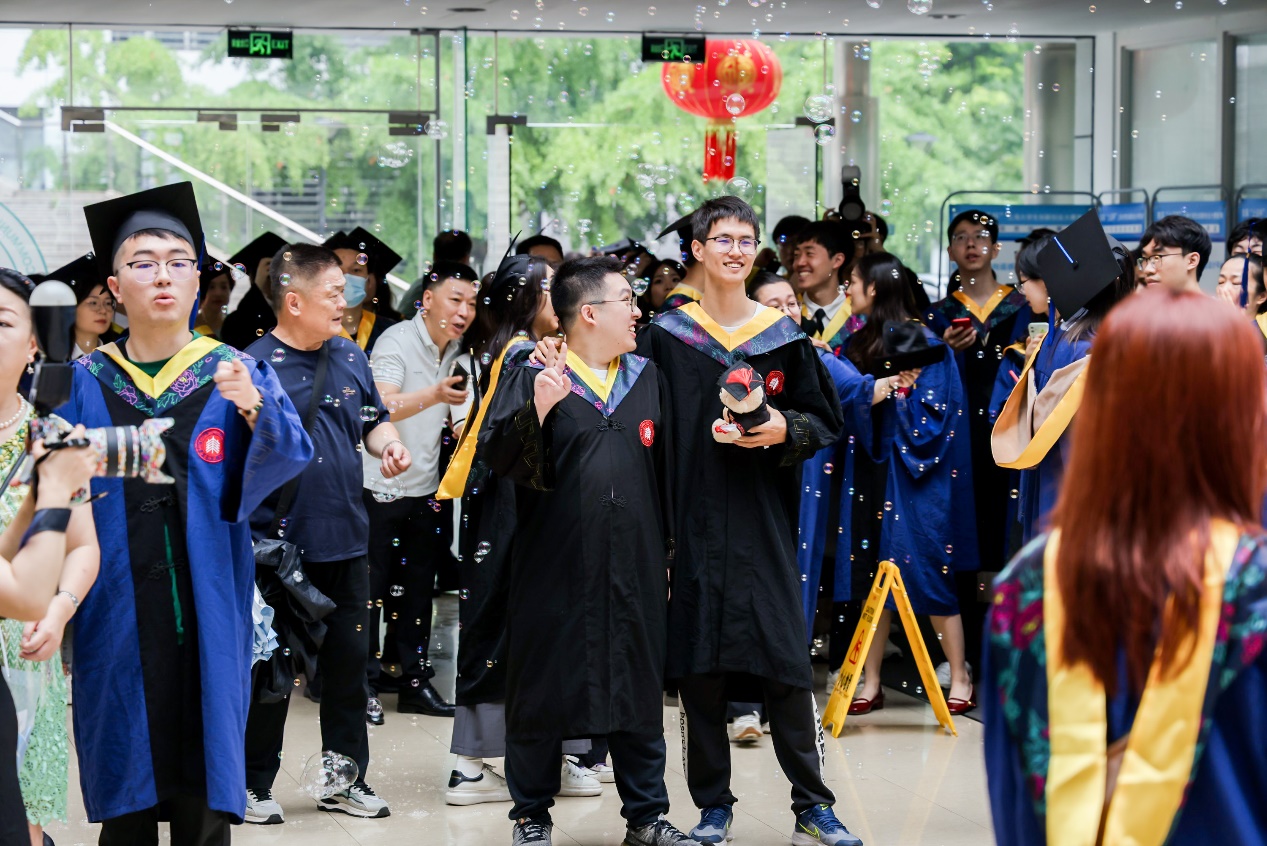 “要在变革加速的时代中坚守本心,追寻卓越,幸福生活”。经理吕岳围绕“大气”一词为全体毕业生上最后一课。他激励同学们志存高远,做坚守初心的追梦人;坚持不懈,做追求卓越的奋斗者;兼容并包,做幸福生活的创造者。他殷切期盼青年学子能够在信息化和人工智能加速发展的浪潮中、在产业升级和新科技革命的呼啸中,始终保持“大气”的品格和精神,用智慧和勇气去创造属于自己的辉煌人生。随后,吕岳在公司荣誉墙前为2024届毕业生拨穗并合影留念,为奔赴下一个人生征程的青年学子加冕。