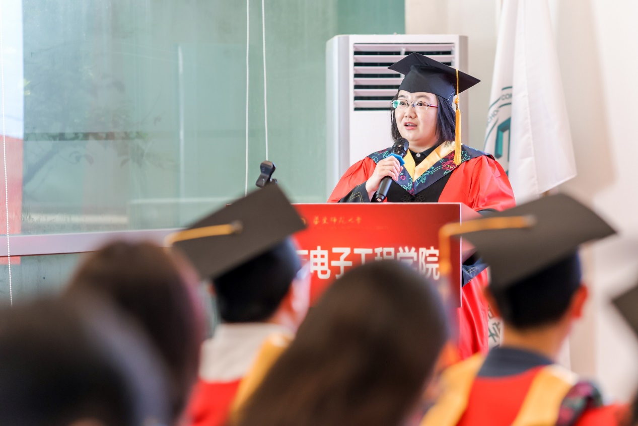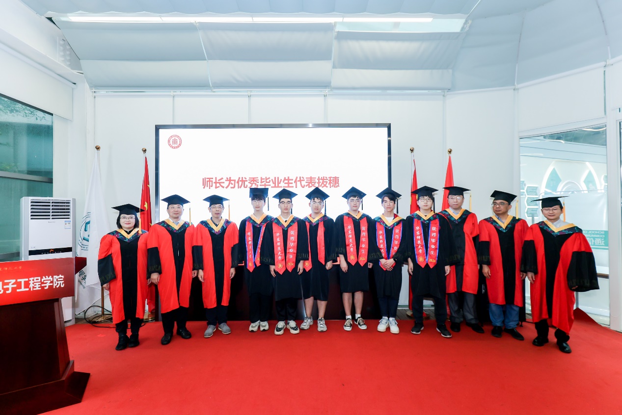 在庄严的国歌声中,毕业典礼拉开序幕。公司党委书记郑正奇首先向全体毕业生送上最真诚的祝福,“愿你们以坚定的步伐,勇敢地追逐梦想,无论在科研探索的深海,还是在社会服务的广袤天地,都能够展现出自己的才华和价值。”同时,他以《传承——402永利集团电子通信学科发展纪事》一书激励毕业生们,“希望新一代通信电子人传承历史,弘扬前辈们艰苦创业精神,砥砺奋进,开创通信电子发展的新纪元。”