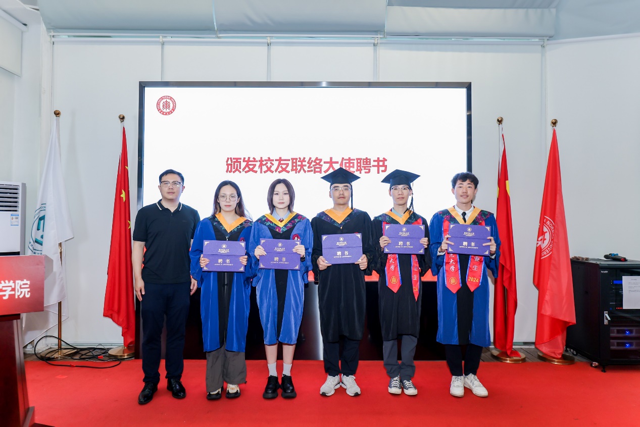 2024年,公司共有32名同学被评为市级、校级优秀毕业生,共有6名同学被聘任为员工联络大使。公司教师代表们为优秀毕业生代表拨穗,公司党委副书记副经理夏冰为员工联络大使颁发聘书。