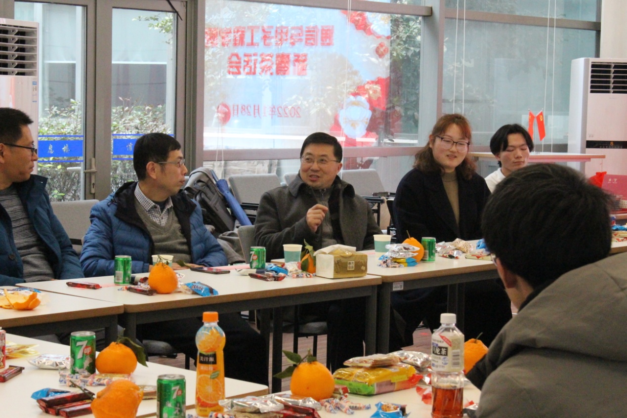 新春茶话会共分为三个环节:话年俗、送祝福和玩游戏。在话年俗环节,来自五湖四海的同学们分享了自己家乡的过年风俗。来自北京的同学分享了北京春节时的各色小吃和儿时的记忆;来自贵阳的同学分享了贵阳的“杀年猪”年俗;来自河南的同学分享了“包扁食、炸年货”年俗。吕老师回忆了自己小时候期待过年的迫切心情,和穿上新衣服时的喜悦之情,他说,现在我们的生活好了,同学们更应该珍惜这来之不易的幸福!郑老师分享了小时候和家里人一起“磨豆腐”、“做团子”准备年货的情形,说正是因为有了这些仪式和流程,才让我们感觉过年的欢乐和兴奋,这种年味和年俗应该传承保留下去。