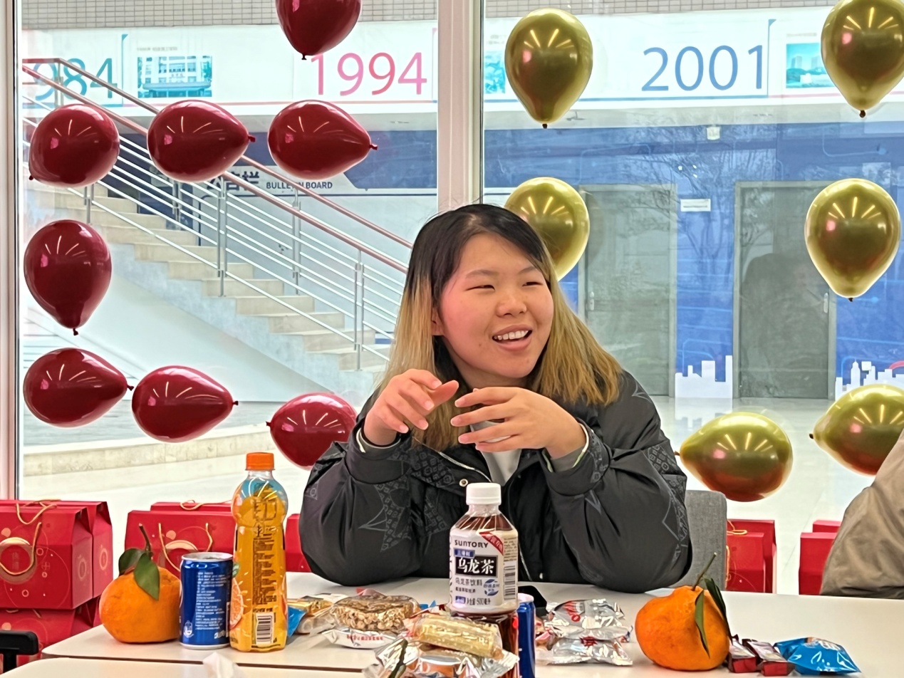 1月28日下午,信息楼魔方厅洋溢着浓浓的新春气息,厅内外大红中国结高高挂起,气球组成的“2022”分外耀眼,红色的剪纸灯笼排列整齐,402永利集团2022年新春茶话会如期举行。公司党委书记郑正奇;经理吕岳;教师代表刘一清;经理助理、辅导员王海建;辅导员祝菲尔与留校的员工一起出席了新春茶话会。