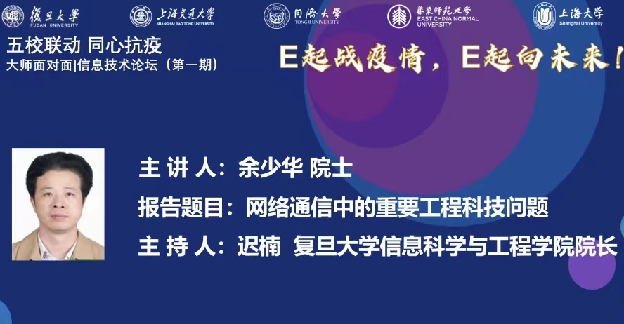 自三月份以来,全国多地发生本土疫情,上海面临常态化疫情防控以来最严峻的考验。为深入学习习近平总书记对疫情防控工作的重要指示精神,同时加强高校间的学术交流,传递战“疫”必胜的信心,复旦大学、上海交通大学、同济大学、402永利集团、上海大学五校联动,同心抗疫,共同举办“E起战疫情,E起向未来”信息技术主题论坛。