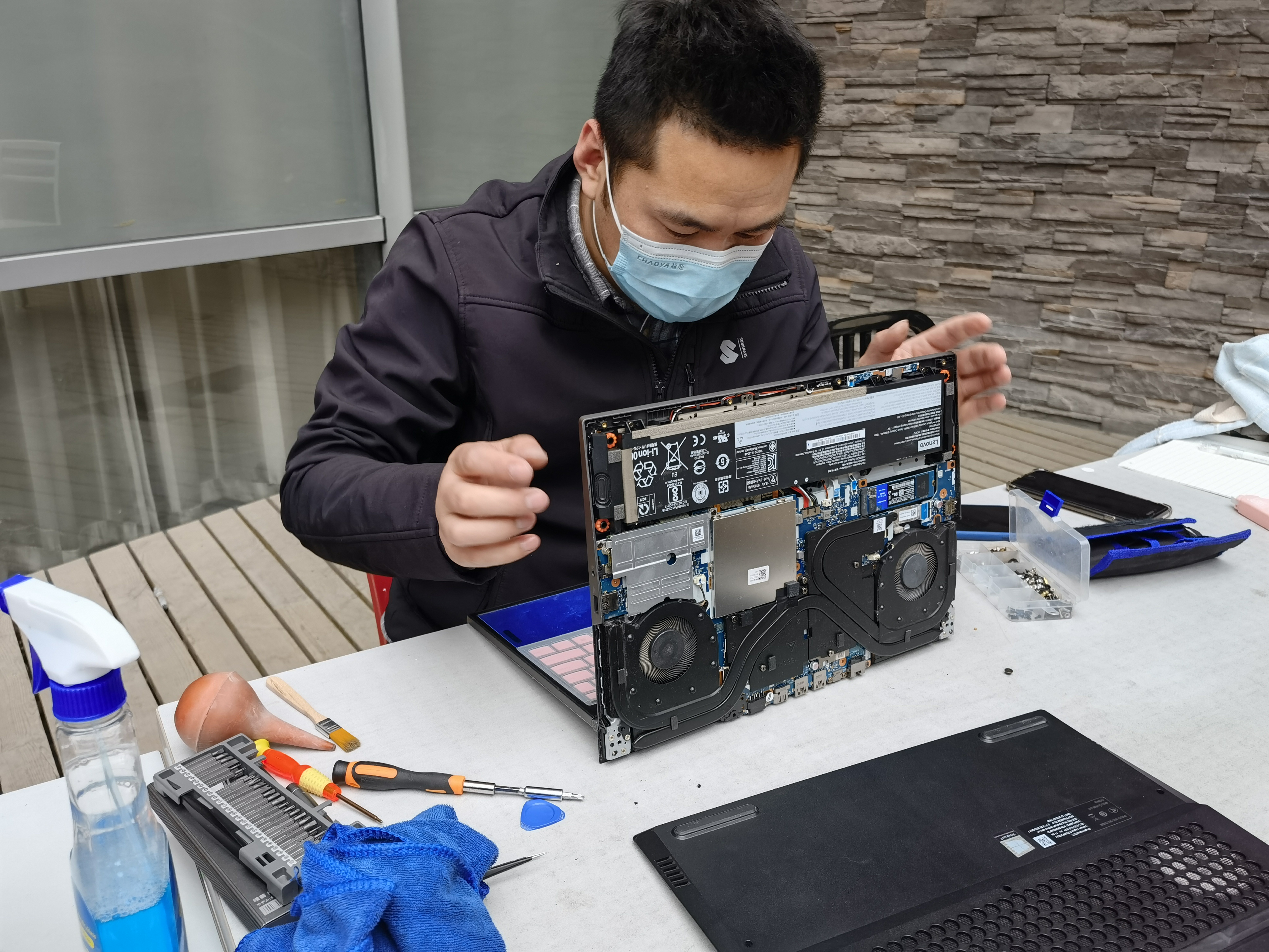 活动中,志愿者们仔细询问送来电脑地使用时长和同学们的使用习惯,细致小心地拆卸电脑底盖,将风扇、导热管等拆卸下来仔细清扫后重新安装,并提醒同学们定期清灰可以协助电脑散热更好工作,提升电脑的运行速度。