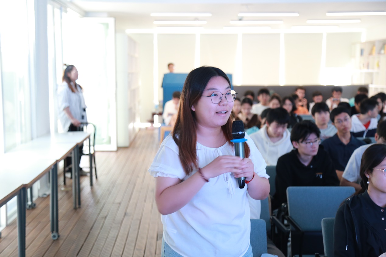 互动环节,同学们结合自身实际就如何创业、如何在就业与创业之间进行选择、创业精神培育等方面继续与王婉芳员工展开深入交流。王婉芳员工对在校青年学子提出建议,要积极参加双创比赛,在不断的历练和挑战中培养创业精神,要学会充分利用校内外公共服务资源,借助创新创业资源提升自己的创业能力。