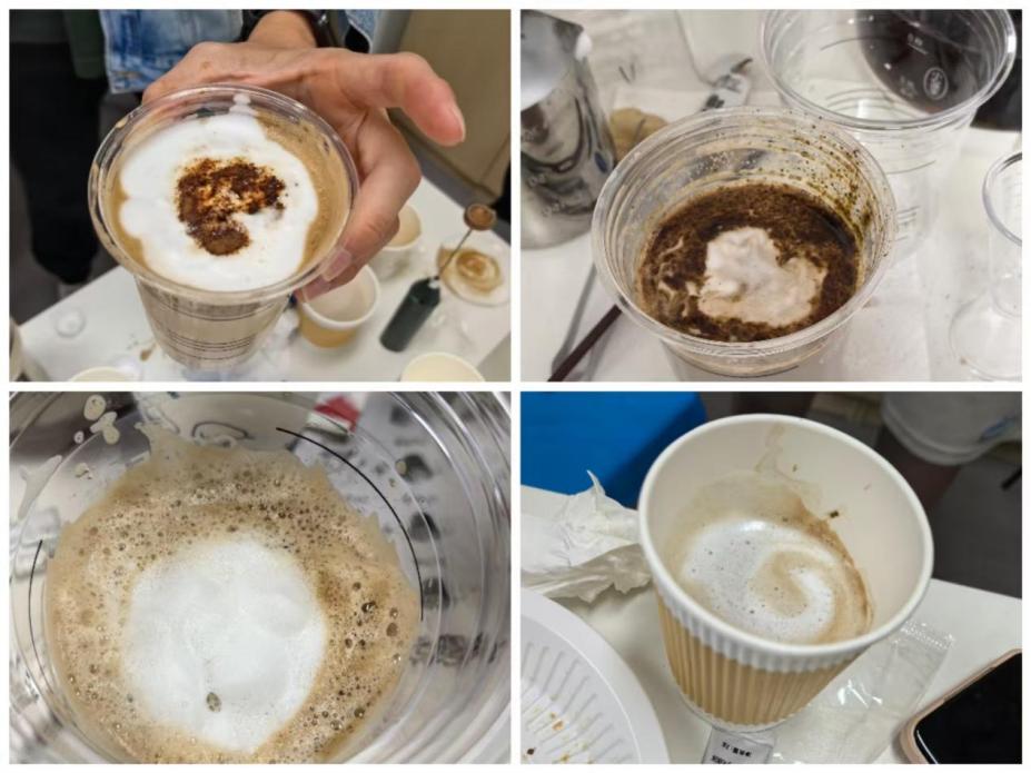 咖啡拉花不仅是技艺,更是一种治愈的艺术。活动现场,师生们尝试用奶泡勾勒出心形、树叶甚至小熊图案,尽管手法生疏,但每一杯都独一无二。有同学笑称自己的拉花像“抽象派艺术”,却意外收获大家的点赞;还有老师认真调整奶泡流速,最终成功画出笑脸,引来阵阵欢呼。活动现场笑声不断,小小的咖啡杯成了承载快乐与成就感的画布,让每个人在创作中收获简单的幸福。