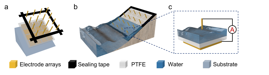 近日,公司硕士研究生顾豪杰同学在周晓峰副教授指导下将体效应首次应用于固液界面波浪能采集转换。在分析比较传统摩擦纳米发电机在波浪能采集所面临的瓶颈后,通过将液滴发电机中的体效应引入到波浪能采集,显著提高了基于固液界面的波浪能采集器件的输出性能。通过设计布置外部3D电极将体效应引入波浪能采集中,能量采集器件可以得到42 V的开路电压和4 mA的短路电流的输出。同时,3D电极的引入也促进了器件阵列化研究,阵列化后的波浪能采集发电机可以达到11.7 W/m2功率密度的输出能力。