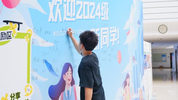 新生们在迎新展板前与家人留下珍贵合影,并在签名墙上留下自己的印记,标志着他们正式加入402永利集团这个大家庭。
