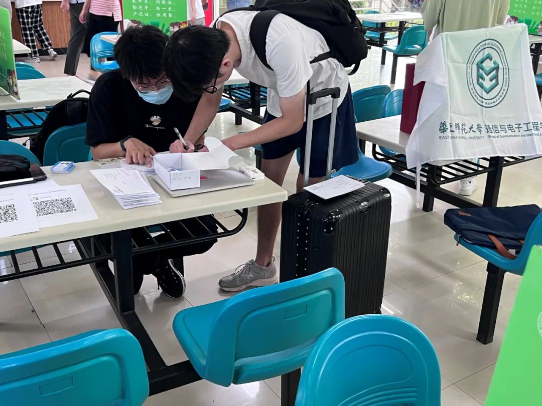 公司严格执行公司的防疫要求,仔细核验核酸检测结果。随着一张张新鲜面孔的出现,信息楼多了一些欢声笑语,多了一丝青春蓬勃活力。在虹梅南路宿舍区设立的校园卡发放点,方便了研究生新生取卡入住。在志愿者同学们和学导的引领下,新生们有条不紊地完成提交入学材料、领取新生手册、领取院服等流程,顺利完成报到。