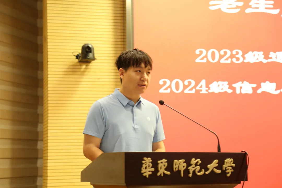 2023级通信工程专业硕士研究生和2024级信息与通信工程专业博士研究生王玮烽同时作为老生和新生代表发言。他强调,创新是这个时代背景下必备的核心竞争力,作为公司的老同学、新晋博士生,将与大家一起,在科研道路上并肩作战,共同面对研究中的每一个难题,勇敢追梦。他鼓励学弟学妹们努力让创新成为一种习惯,让传承成为一种责任,用实际行动践行“志存高远,脚踏实地”的信念。