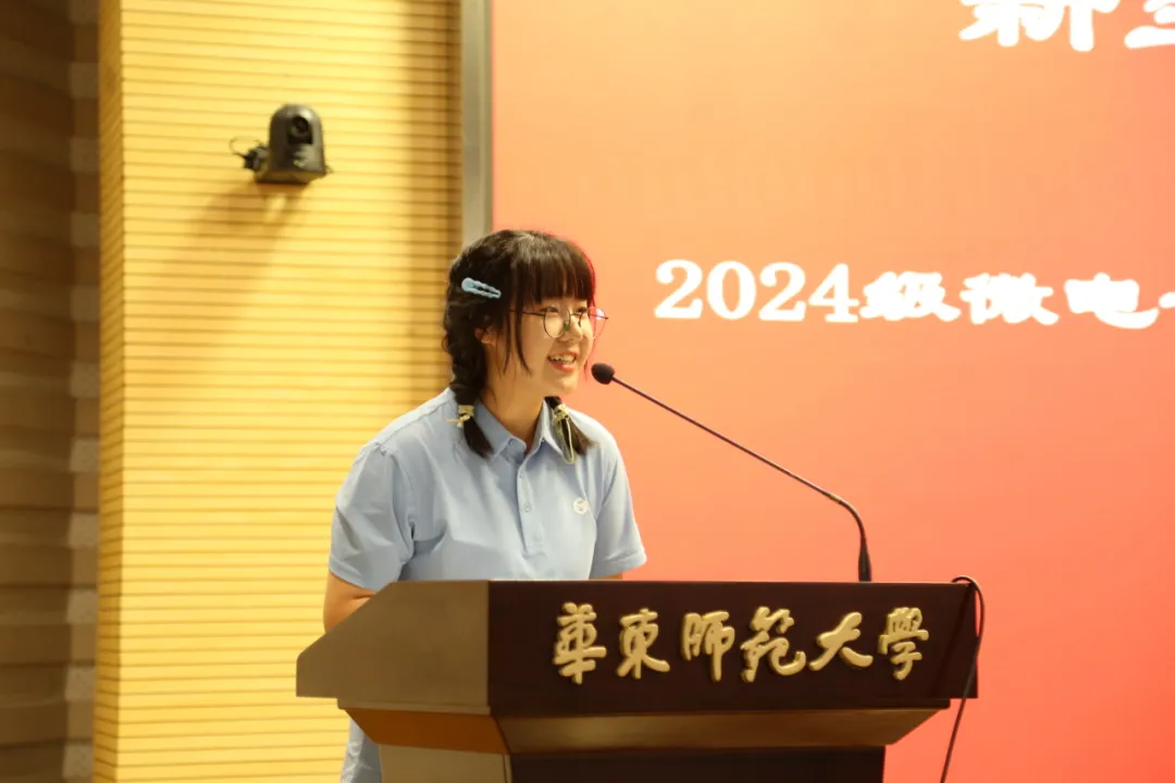2024级微电子科学与工程专业本科生王艺潼作为新生代表,表达了自己对未来老员工活的期待和对参与到技术变革时代的渴望,希望与公司所有师生乘风破浪、携手共进的志向。