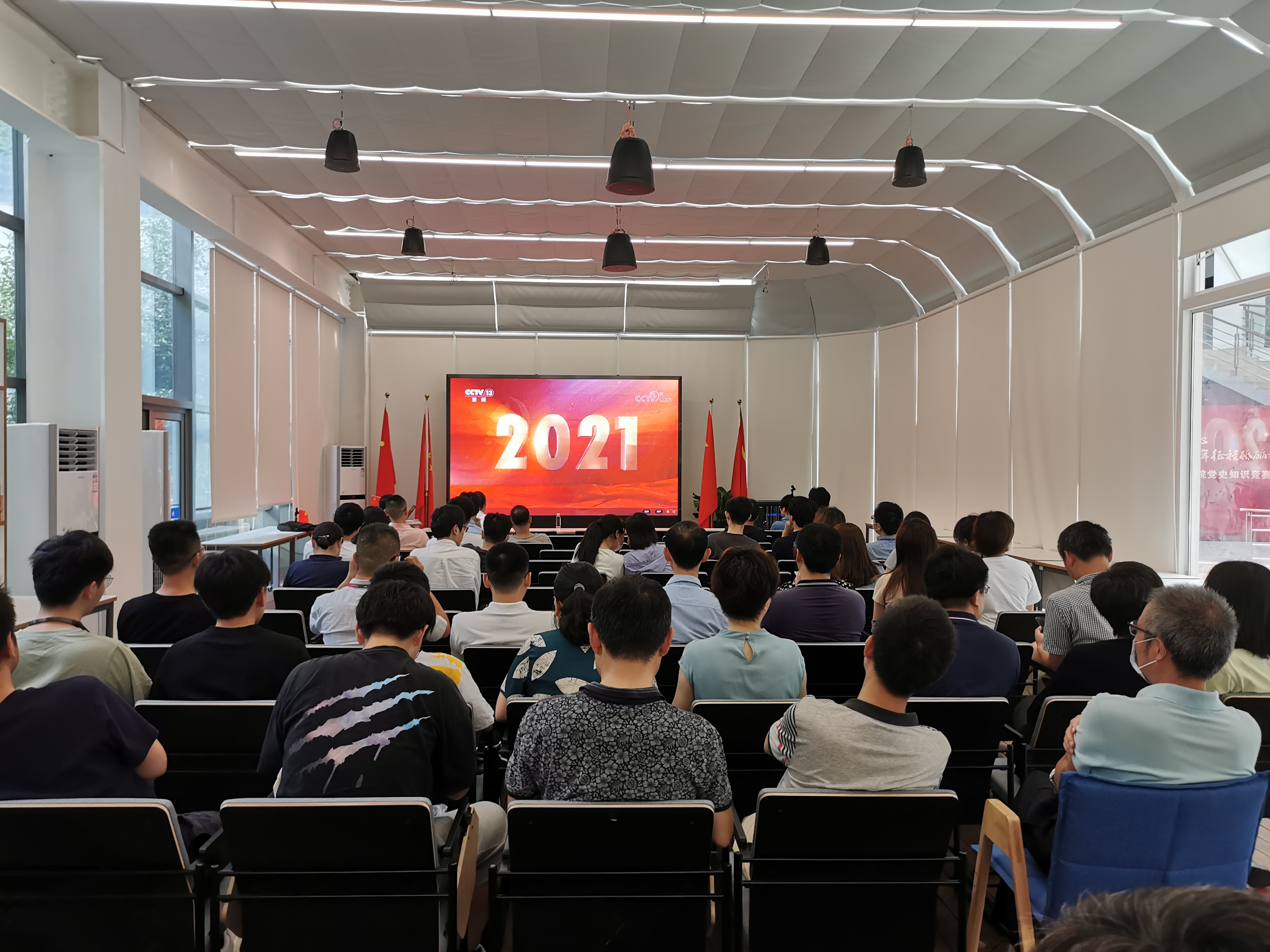 7月1日上午8时,庆祝中国共产党成立100周年大会在北京天安门广场隆重举行,中共中央总书记、国家主席、中央军委主席习近平发表重要讲话,公司党委组织全体师生在魔方厅观看实况直播。