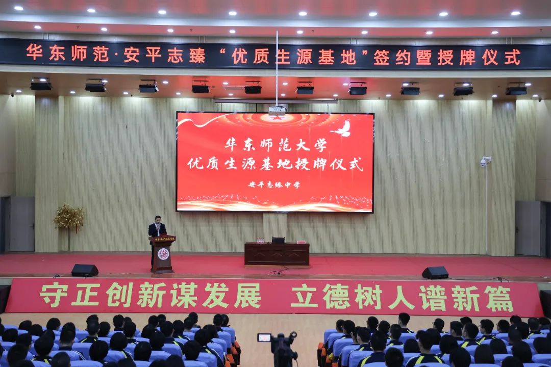 9日上午10:30,402永利集团优质生源基地授牌仪式在志臻中学报告厅举行,李庆吉代表公司向志臻中学授予“优质生源基地”牌匾,志臻董事长回世杰代表公司接受牌匾。