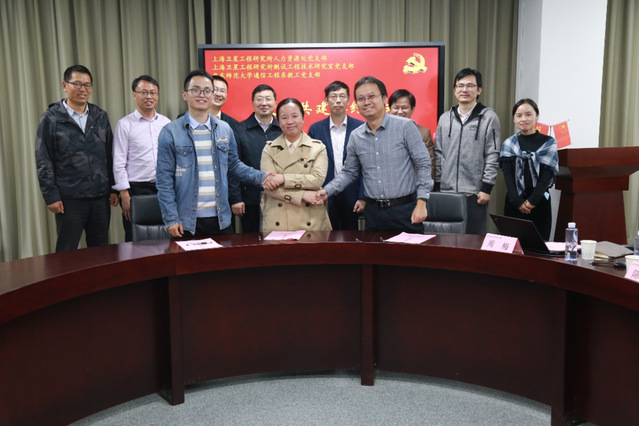 上海卫星工程研究所测试工程技术研究室党支部书记、测试室主任董房,副书记、测试室副主任蔡先军,测试室副主任周汝志、人力资源处张赫,通信公司党委书记郑正奇、经理吕岳、副经理乔德礼、经理助理王海建、组织员李晓婉以及通信工程系教工党支部委员参加共建活动。活动由通信工程系教工党支部书记周梅主持。
