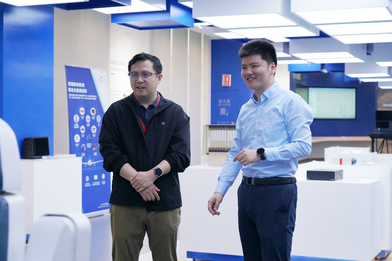 在昂际航电BLU业务部门总监李扣生陪同下,公司团队参观了企业展厅及部分研发测试实验室,详细了解了昂际航电在民用航空电子领域的核心技术、创新成果及在低空经济领域战略规划,近距离感受了行业前沿科技的应用场景与发展动态。
