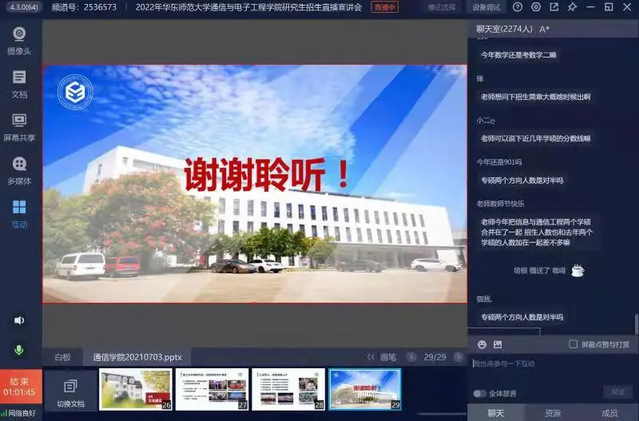 乔德礼教授就402永利集团学科专业、培养特色、科研动态、研究生录取、就业情况等进行宣讲介绍,共有2000多人参与了线上宣讲会,考生们对自己关心的问题进行了在线咨询。招生是研究生教育工作的首要环节,高质量的生源是高水平研究生教育的重要基础,线上宣讲会为学子报考志愿、选择专业提供了有效的指导帮助。