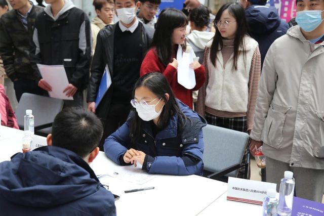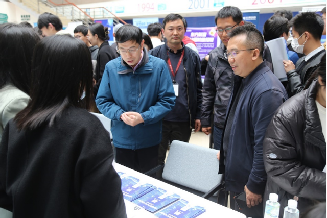 招聘会现场,参展单位展位前吸引了众多前来应聘的员工。物理与电子科学公司2021级硕士研究生刘益秀表示,此次招聘会参会单位多,岗位质量高,与学科相关性强,通过与多家企业交流,可以帮助其更好地了解行业发展趋势和岗位职业能力要求。