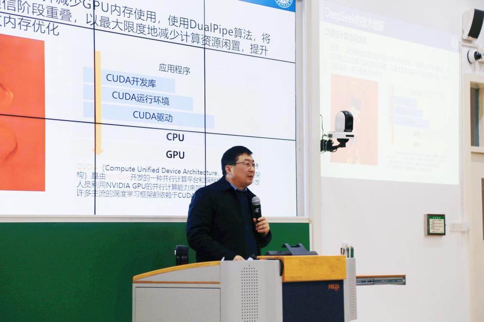 随后,吕岳深入浅出地解析了国产AI大模型DeepSeek的核心技术创新与战略价值,称其为人工智能核心能力的跨越式提升,有力地支撑着国家科技战略和社会数字化的转型。同时,也提到我国人工智能发展仍面临诸多难题,鼓励同学们打破固有思维,夯实专业技术能力,以坚韧的毅力推动AI从理论到实践的跨越,为我国人工智能发展注入新动能。