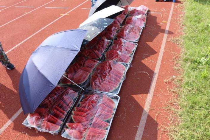 在军训期间,后勤组成员也同样贡献着自己的一份力量,积极准备军训物资,为场上的训练同学提供西瓜、绿豆汤以及防止中暑的藿香正气水等,切实保障了场上同学的训练。