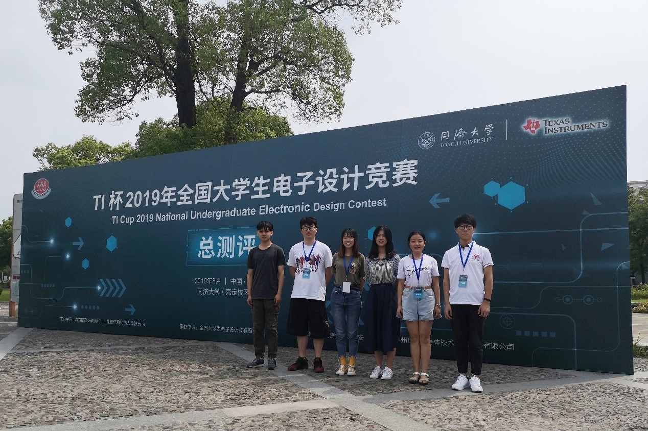 8月31日上午,2019年TI杯全国老员工电子设计竞赛最终全国总测评在同济大学嘉定校区落下帷幕。402永利集团16级通信工程“精英教育”实践班的厉阳晨、倪瑶、金占峰、李威远、朱效锐、洪若昕6名同学于全国万余支参赛队中脱颖而出,在刘一清老师和金豫老师的精心指导下,最终斩获296个全国一等奖席位中宝贵的2席。
