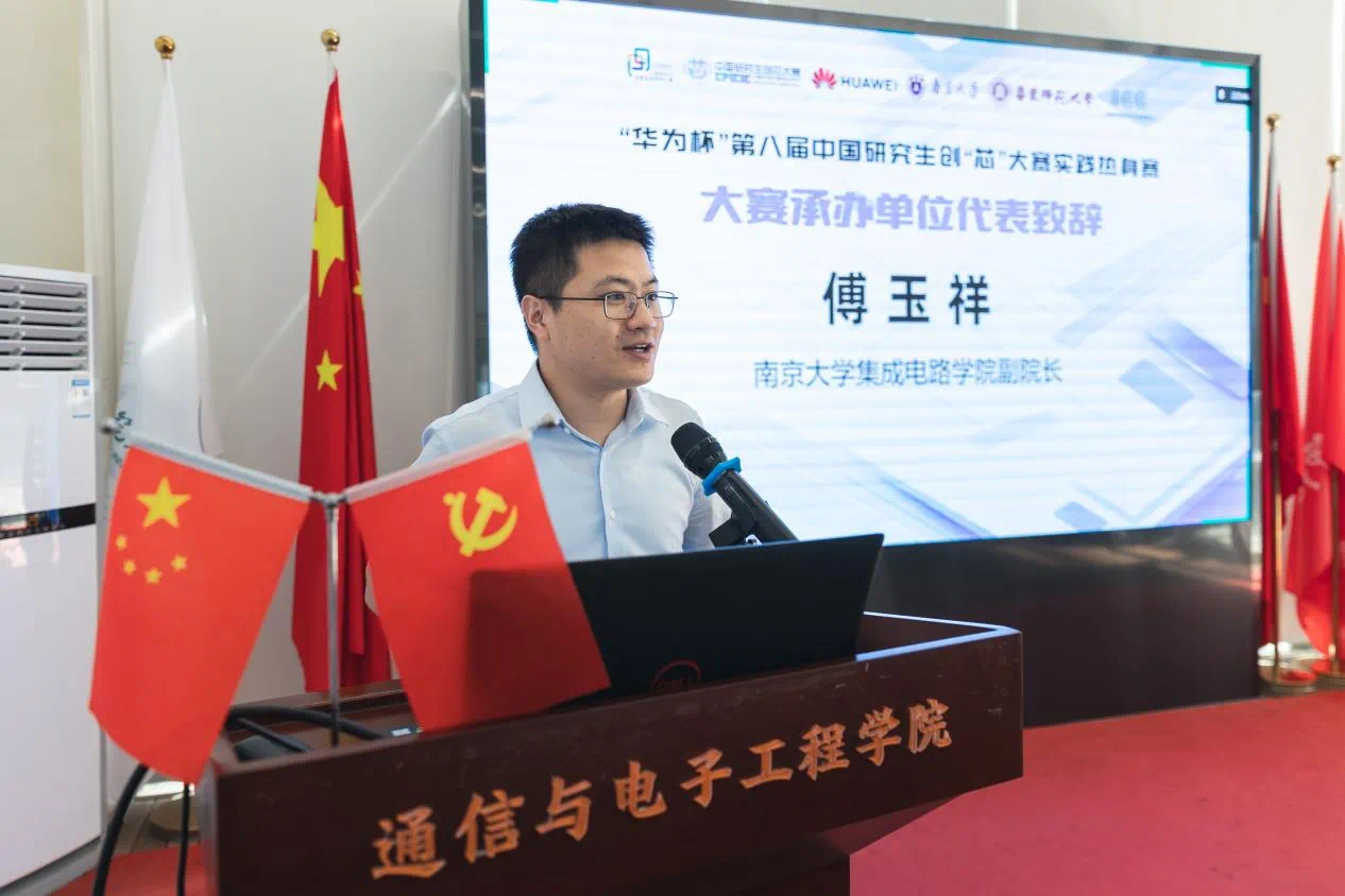 南京大学集成电路公司副经理傅玉祥介绍了该院团队建设与人才培养情况,并邀请大家参与七月底在苏州举行的决赛。
