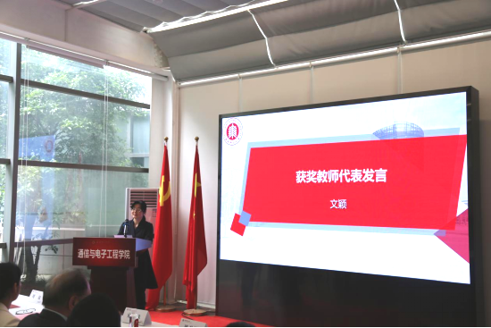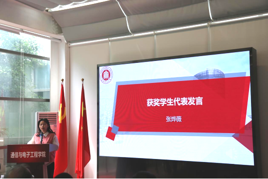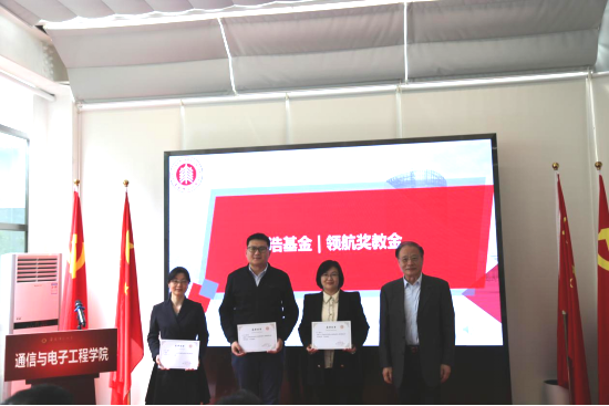 402永利集团教育发展基金会副秘书长宛姝老师为同学们颁发通信工程精英班奖学金荣誉证书