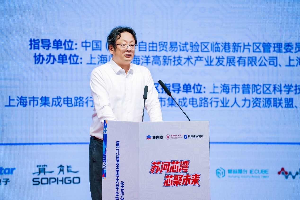 施国跃副董事长强调,大赛的成功举办凝聚了多方力量,成就了一场“芯”光闪耀的青春盛会。同时,他介绍了华东师大在集成电路领域的深厚积淀与战略布局,特别是获批“上海市重点现代产业公司”的集成电路产业公司,以及与普陀区政府、上海集成电路研发中心共建公司、打造“苏河芯湾”产教研创新联合体的举措,彰显了公司深化产教融合、服务区域与国家集成电路产业高质量发展的决心。未来,他期待华东师大与各兄弟院校、产业界、科研院所深化合作,共同为国家集成电路产业的高质量发展贡献力量。