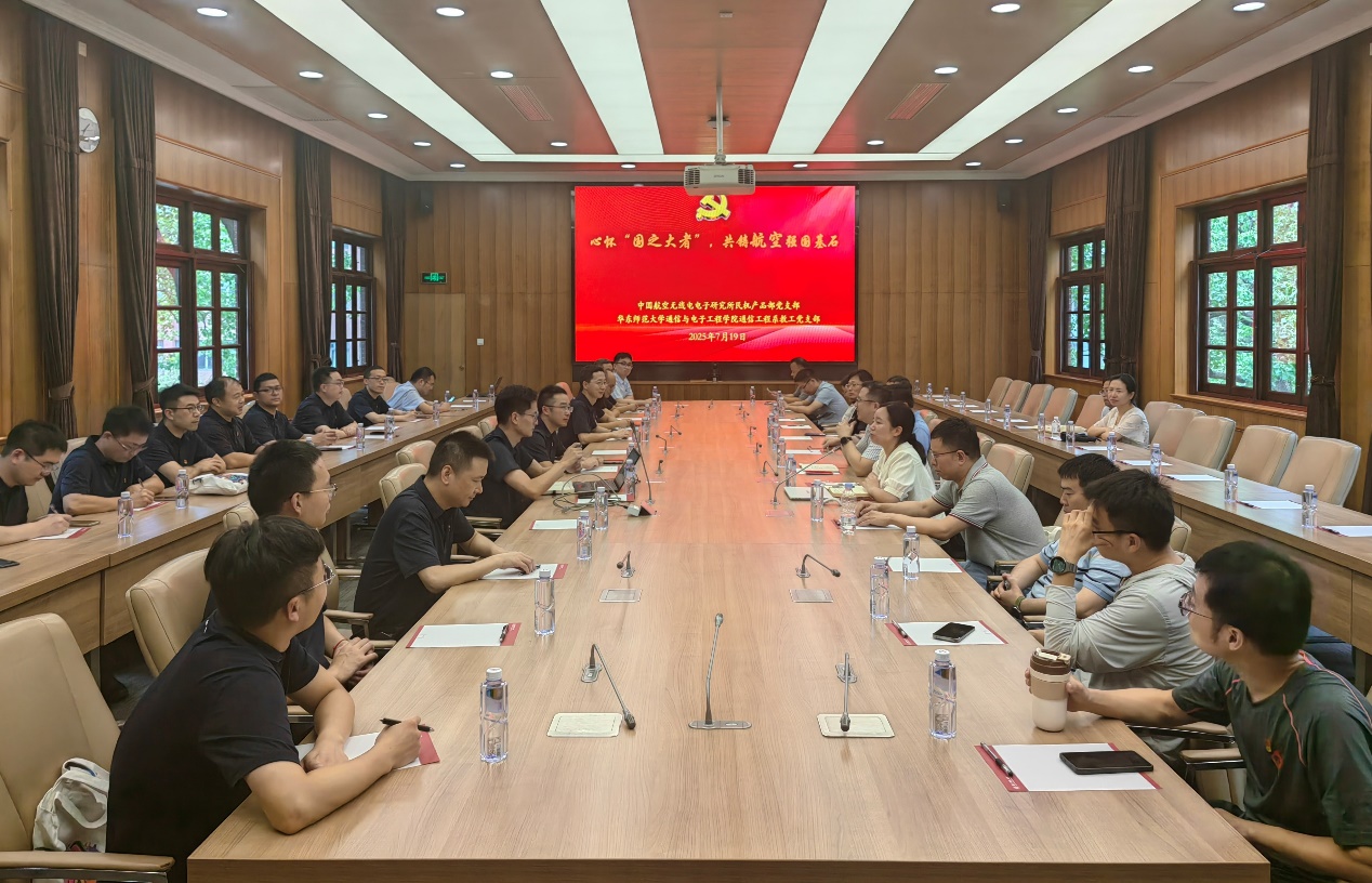 7月19日,为深入学习贯彻党的二十大和二十届三中全会精神,持续深化党建与业务的融合,不断增强基层党组织政治功能和组织功能,推进作风建设走深走实,值此中国共产党成立104周年之际,通信工程系教工党支部与中国航空无线电电子研究所(615 所)民机产品部党支部联合举办“心怀‘国之大者’,共铸航空强国基石”主题联学共建活动。研究生院经理吕岳,公司党委书记夏冰、民机产品部部长、党支部书记孙远、副部长李想与张钰鹏等出席,两个党支部共计40余名党员参加活动。
