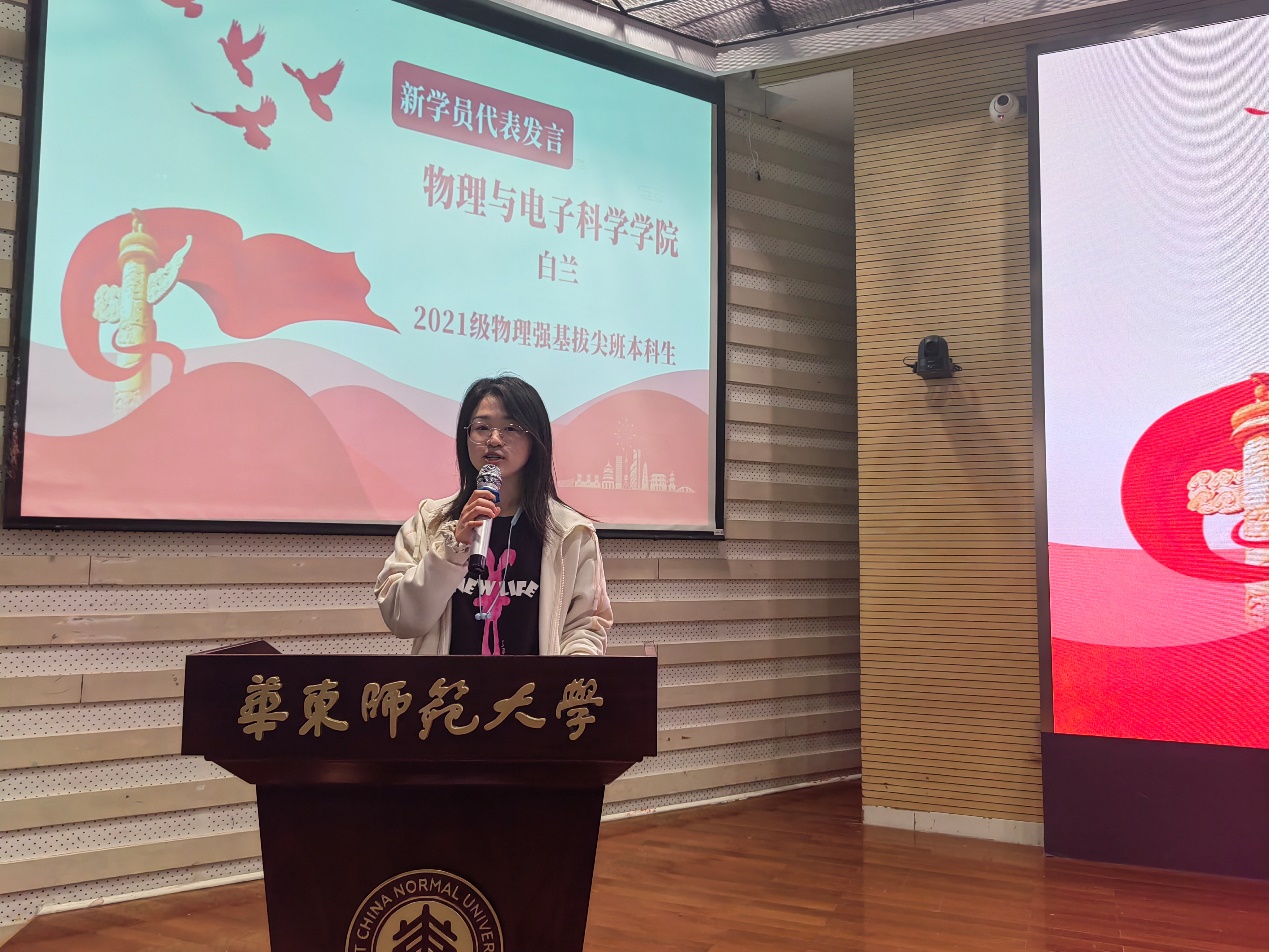 随后,哲学系2022级硕士研究生韩潘越作为老生学员代表发言,她认为,作为入党积极分子,提升党性修养是必修课,而参加党校培训正是提升党性修养的好机会,希望各位学员在接下来的党校学习中认真、踏实,学有所获。物理与电子科学公司2021级本科生白兰作为新学员代表发言,她认为,入党积极分子培训班的开办是党组织对学员们的政治素养和思想觉悟的培养,是党组织对我们的信任和重托,更是一次难得的学习机会,她对接下来的党校学习表达了信心和期待。