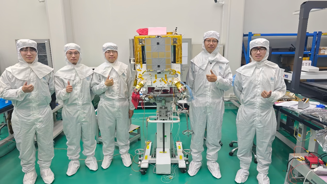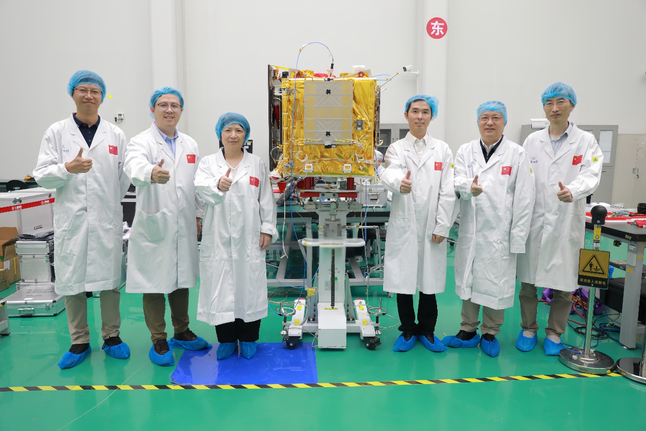 今年6月13日,卫星出征前,华东师大党委书记梅兵来到卫星总装测试现场,向以廉鹏飞研究员及员工代表组成的试验队授旗,以特别能吃苦、特别能战斗、特别能攻关、特别能奉献的载人航天精神勉励团队,攻坚克难、精益求精,确保发射任务万无一失。